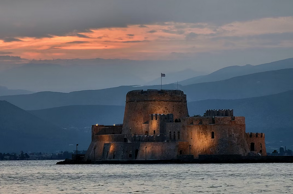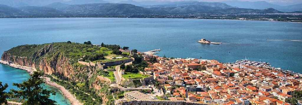 One of the most beautiful towns of Greece in the area of eastern Peloponnese, full of history and romance with Ancient castles and Medieval architecture, first capital of liberated Greece between 1823 and 1834, is Nafplion.